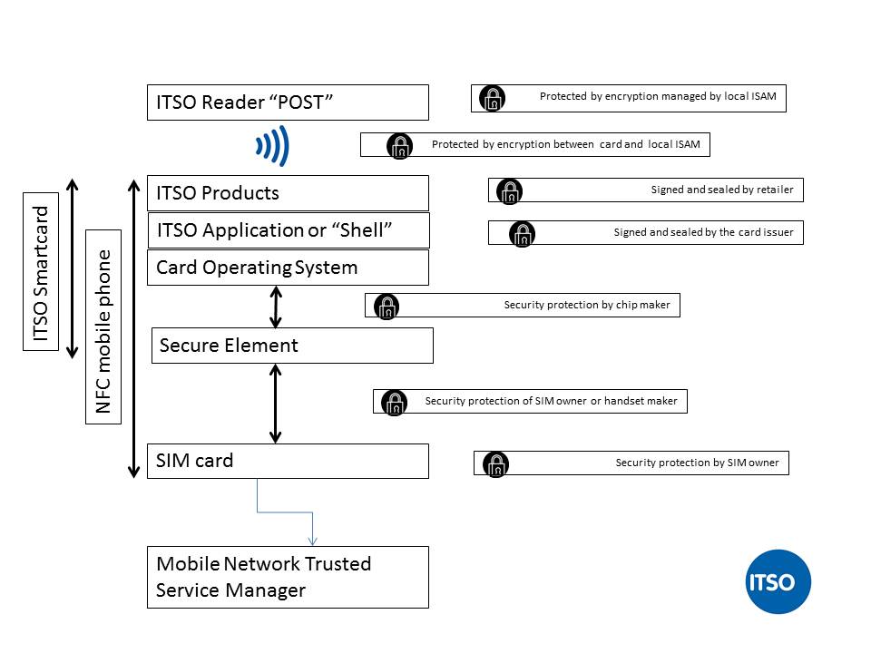 All ITSO-compliant systems rely on ISAMs (ITSO Secure Application Modules) which are secure electronic data processing modules, the size of a mobile phone SIM card. These check the card holders’ permissions, authenticate and validate their electronic tickets, and store journey data for further processing.